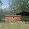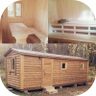 К услугам гостей — 4-х комнатные деревянные летние домики, разделенные пополам: по два номера с отдельной кухней и верандой в каждой половине. В каждом домике можно разместиться компанией до 12 человек.